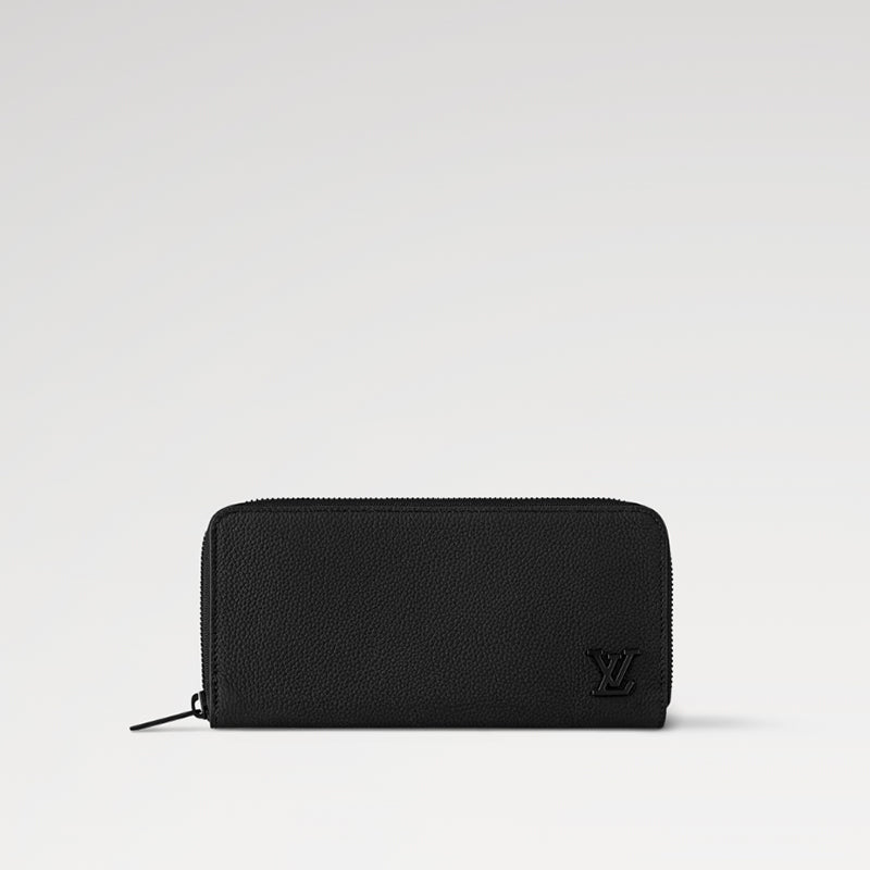 LV アエログラム・レザーで仕立て、ブラックのメタルパーツをあしらった「ジッピーウォレット・ホリゾンタル」。伝統的な「ジッピーウォレット・ヴェルティカル」を再解釈しより機能的な横型にアップデートしました。ラウンドファスナー開閉式の実用的なデザインに、ファスナー付きポケットを中央に配したメインコンパートメントと各サイドに6つずつ並べたカードスロット、紙幣や領収書用の2つのフラットポケットを備えています。